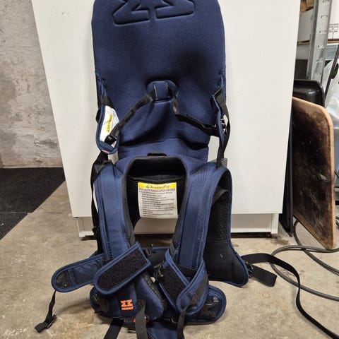 Med ryggsekk som kan henges på meisen.