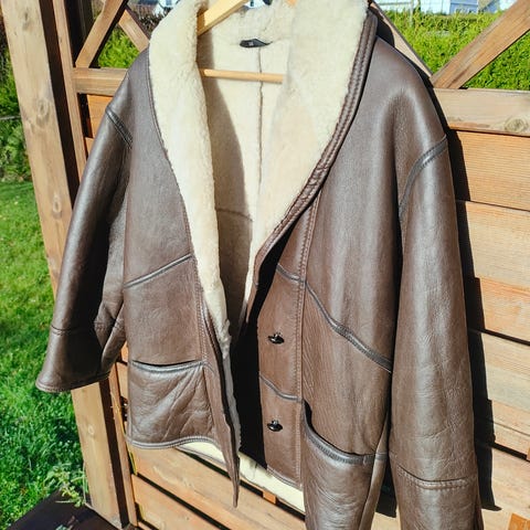 Saueskinn jakke fra Danske Latif. Str M. Ikke synlig brukt.