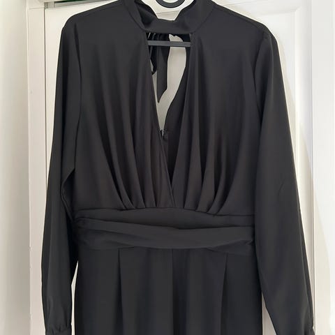 Veldig fin mørkblå jumpsuit i str M, paljetter på overdelen med fine ermer. Nedre delen har rette ben med et belte i midjen som kan tas av. Dressen er kjøpt på zalando fra merket Anna Field. Helt ny med lappen på.