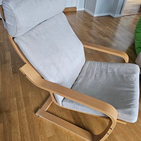 900 kr Hvit Poang lenestol med fotskammel, røyk og husdyr free leilighet.