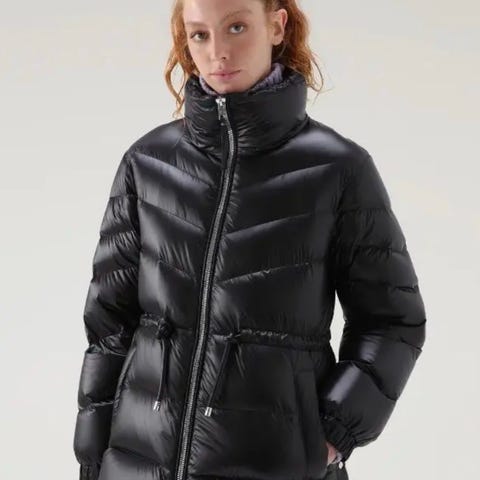 Selger helt ny woolrich dunjakke (cardigan) Aliquippa Hybrid», brunsvart, merket str XL men liten på størrelse.
