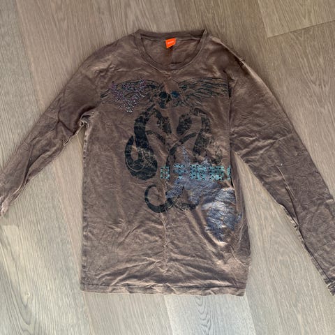 Langermet t-skjorte, beige, unisex størrelse Large
