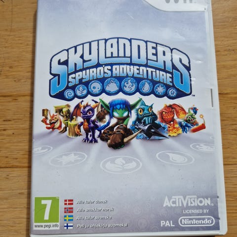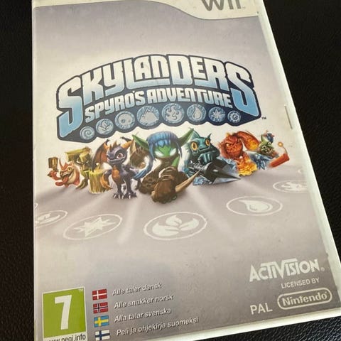 Skylanders Spyro's Adventure med manual selges for 130kr. Testet og funker helt fint. Spillet et PAL. (Betyr at det funker på alle Europeiske Nintendo Wiis.) Funker også på Wii U.