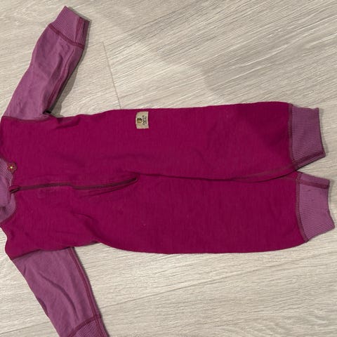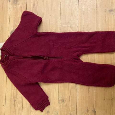 Slitesterk ulldress. Brukt som vogndress og mellomlag. Glidelås helt ned til foten gjør drakta enkel å ta på.