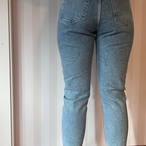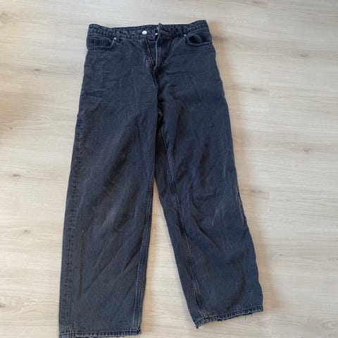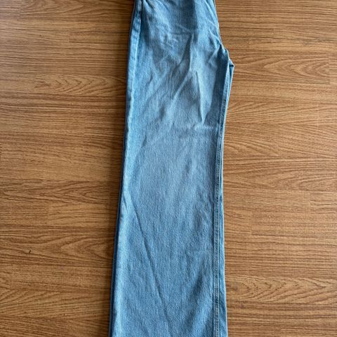 Lite brukte jeans fra h&m selges da de ikke blir brukte. 100 % bomull men myke i stoffet. Rette, vide ben og en superhøy rise (31 cm) . Innerbenslengde er 79 cm og rett over midje ca 40 cm (ca 32 tommer).