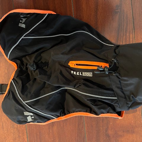Regnjakke til hund. Brukt ca 5 ganger. Fint brukt. Str 27, tilsvarer hund på 3-3,5kg ca, brukt til yorkshire terrier rundt denne vekten.