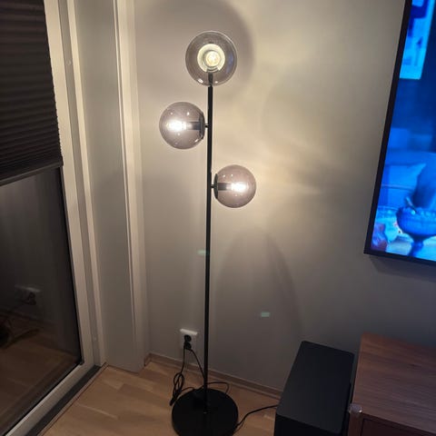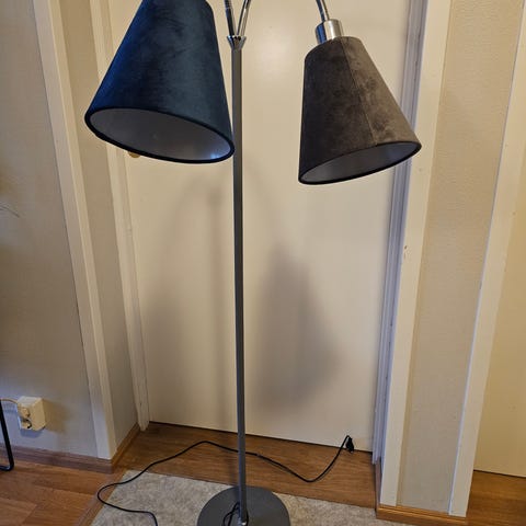 Saga sort gulvlampe med beige Nena 40cm skjerm selges.