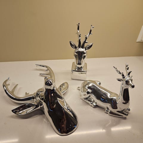 Selger en veggdekorasjon formet som et hjortehode. Materiale: ukjent, men ligner gips. Det er noen ubetydelige bruksspor på snuten (zoom på bildet).