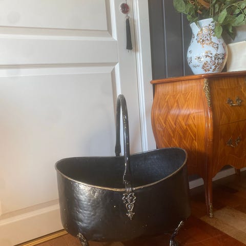 Håndlaget eldre stativ i smijern for aviser, magasiner, tidsskrifter mm.
