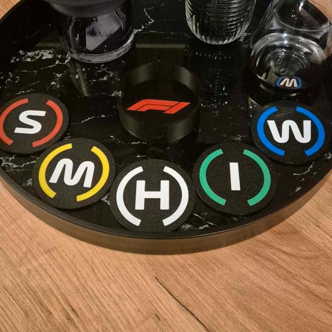 Formel 1 coasters til salgs, kan lage alle lag. (Kan være leveringstid pga manglende farge som må betilles).
