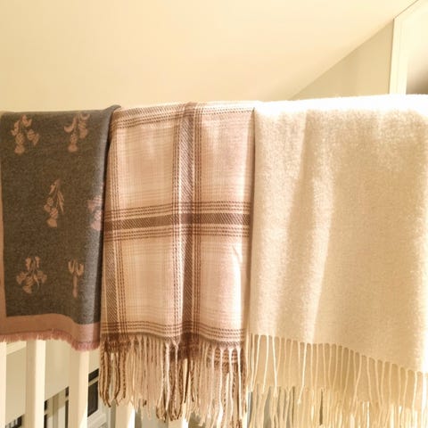Selger skjerf i flotte farger, fine til vår og sommeren. Nesten ikke brukt. Har fin passform og grei lengde.