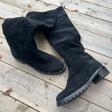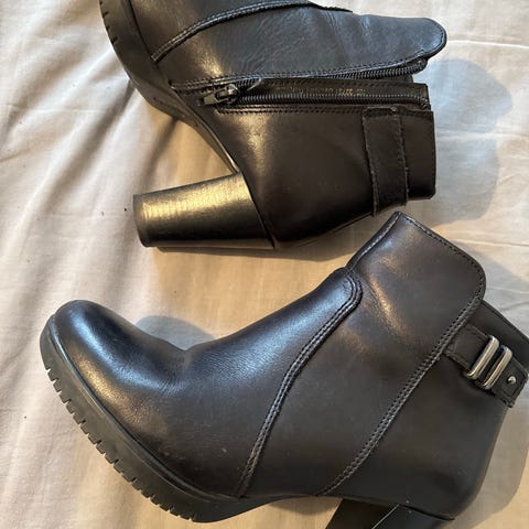 Selger disse fine hælene / bootsene i str 39. Minner om semsket skinn, men ikke helt sikker på om det er ekte. Skoene er veldig behagelig å gå, og stoffet er så behagelig på foten.
