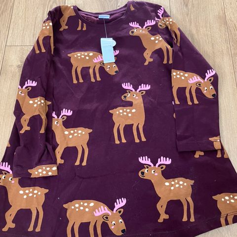 Selger en tunika med dyrmotiv. Står strl ”8” på lappen, men är liten så är som en 110/116.