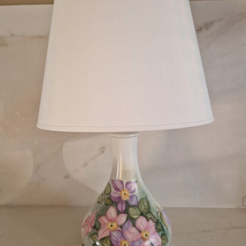 Høyde 31 cm - skjermbredde nederst 21 cm. Skjermen gir behagelig lys. Passer i flere rom - også som nattbordlampe. Billigst frakt Postnord kr. 69. Salget gis til nødhjelp - se profilen. VIPPS 46 808 505