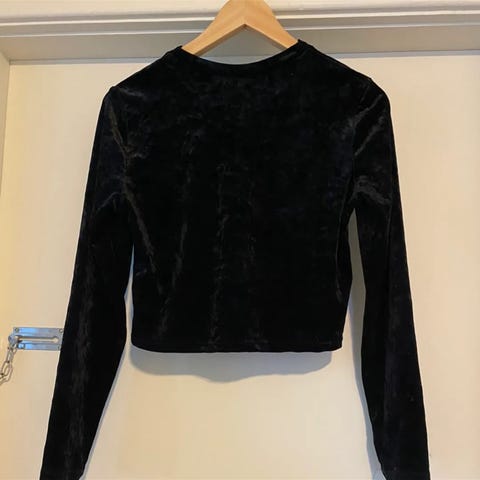 Baggy og kjempe myk genser med mye shine. Passer nok både S og M.