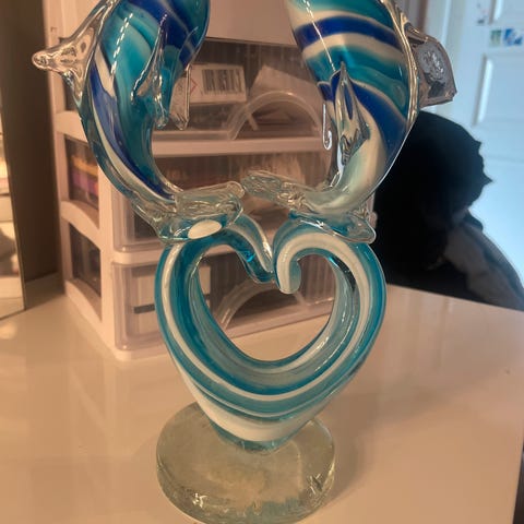 En fantastisk engel i blått glass laget av Lillian Camilla Larsen og en herlig Ugle av Frøydis Samuelsson begge fra Gamlebyen Fredrikstad , selges for kr 1200 samlet, kjøper betaler frakt eller henter i Fredrikstad