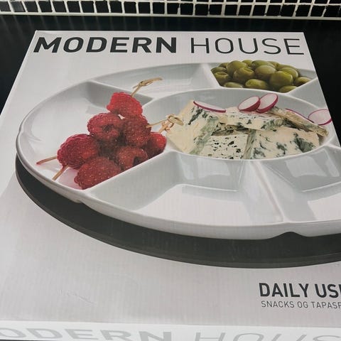 Tapas/serveringsfat fra Modern House på sort roterende trebrett.
