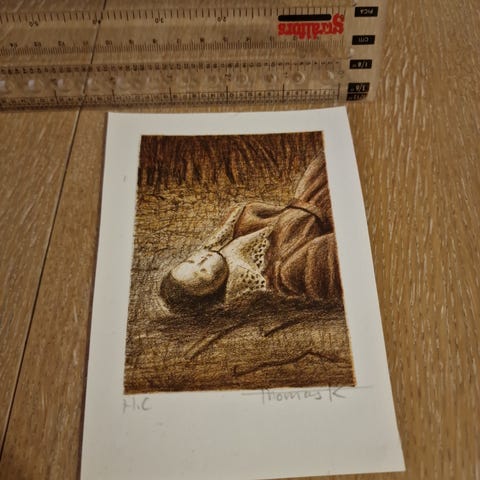 Selger litografiet "Kvil" nr. 76/100 av kunstneren Olaf Storø.