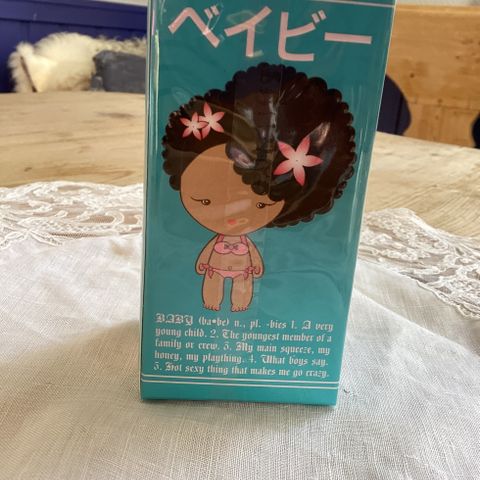 Slik ser flakongen ut. Med figuren stående på selve parfymeflakongen.
