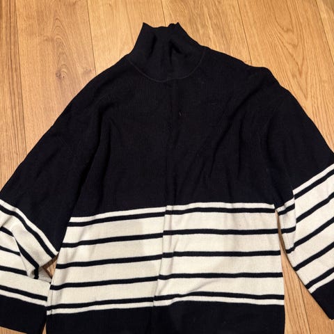 Veldig fin og god genser fra InWear. Den ble kjøpt for en måned siden, og jeg har brukt den noen få ganger. Selger den fordi jeg har to nesten like. Genseren inneholder mye ull og alpakka, og har en lodden look. Etter litt bruk har den blitt litt ytterligere nuppete på forsiden. Jeg har ikke prøvd å fjerne, men vil tro det går med nuppefjerner hvis man ønsker. Jeg kjøpte genseren på litt salg, for kr 1600.