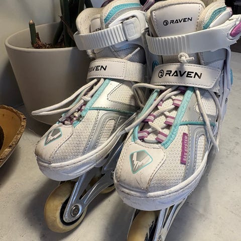 Selger to par rulleskøyter, et par vanlige skøyter, hjelm i rosa farger og beskyttere ,pent brukt . På et par av rulleskøyter og de vanlige skøyter kan størrelse reguleres. Må hentes på Skredderåsen/ Moss