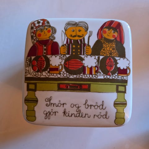 Påskriften med sitatet: "Smør og brød gjør kinden rød"