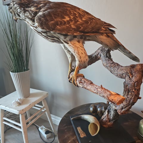 Utstoppet Hønsehauk. Utstoppet av Firos Jessani. Dokumentasjon.