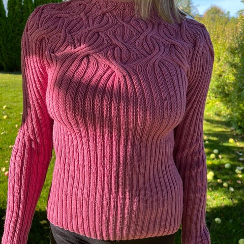 Vakker håndstrikket genser. Hel lengde 49 cm