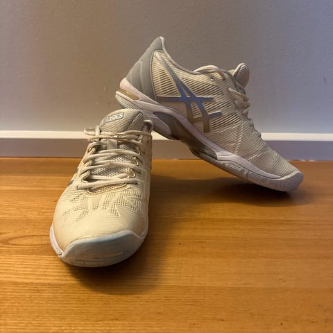 Pent brukte tennissko fra Asics -str 39,5. Er kun blitt brukt et fåtalls ganger. Kjøpt på tennisbutikken på Lysaker
