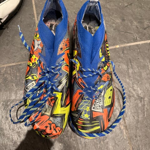 Blå Adidas Predator fotballsko Str 38 2/3. Har vært brukt til kunstgress / gress. Blå med lys blå, hvite og orange detaljer. Krage ved ankelen. Intakte lisser.