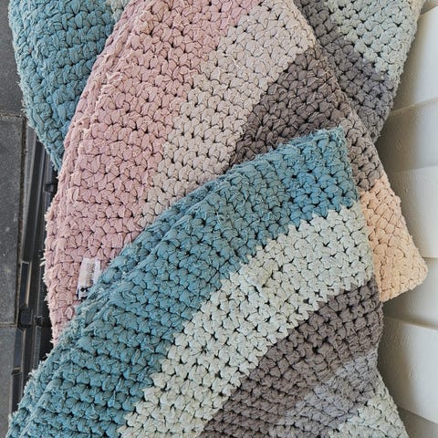Nyttog deilig bomulls pledd heklet i friske farger.