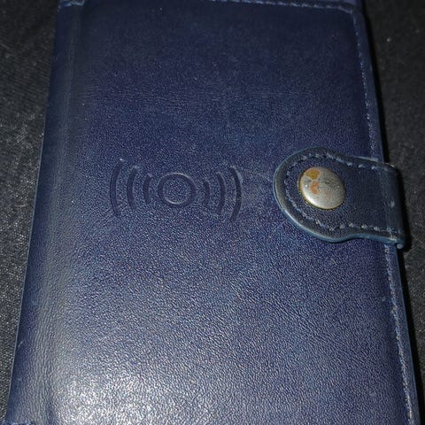 Lommebokveske med telefon, kan bæres separat, blå. Du kan gjemme 3 bankkort i den og det er også plass til f.eks. sedler.