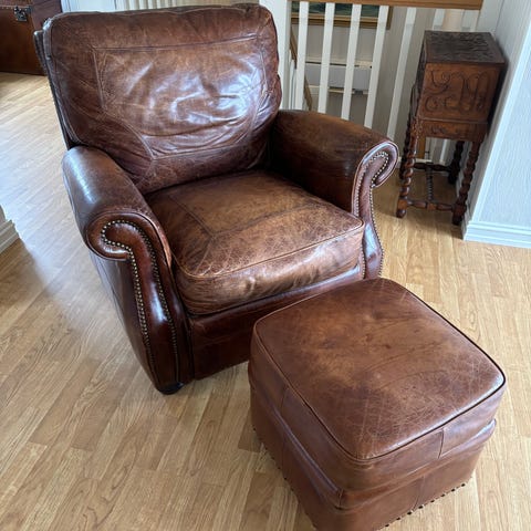 Lenestol med puff i skin