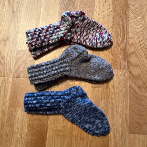 Pakke med ulllester tøffler og votter.