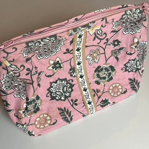 Unik retroinspirert toalettmappe med vinyltrykk selges
