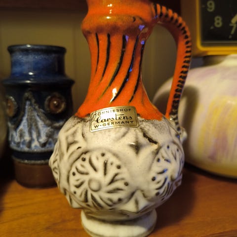 To tyskproduserte vaser med skikkelig retrodekor i sort/gul og gull