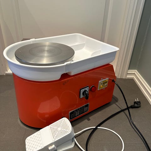 350 W motor, 5 kg bæreevne, 28 cm stor diameter. Lage fantastiske keramikkverk i stor skala.