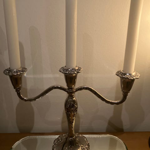 RETRO LITEN SYVARMET LYSESTAKE I SØLPLETT. STAKEN TRENGER EN LITEN PUSS. SMÅ LYS MEDFØLGER.