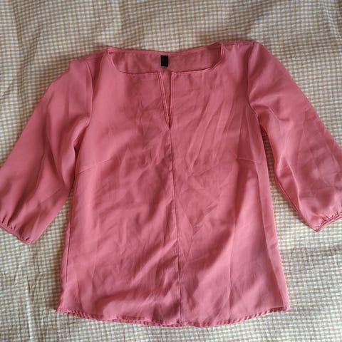 topp bluse Vero Moda rød korall 2010-tallet kort erm enkel klassisk minimalistisk basic strukturert stoff lett stretch feminin fasong buet nederkant lengre bak bak lås pen topp hverdags topp jobb kontor casual chic second hand brukt dame