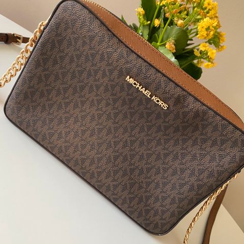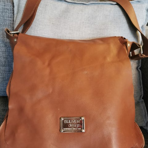 Nydelig flott lærveske i beige farge. Neste ikke brukt