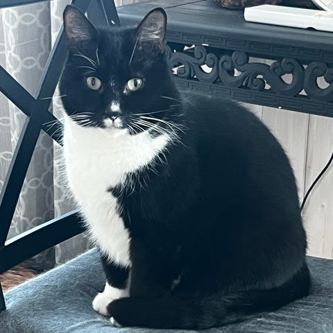 Grunnen til at vi gir bort katten er at vi har et barn med allergier.