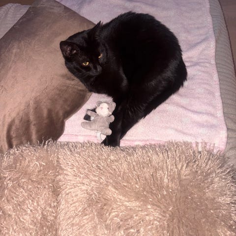 Kitty født sommer 2023 er fantastisk, kosete og utrolig søt. Hun ble reddet inn fra kulden i desember samme år med sin bror Sammy. Kitty er en liten raring som ofte legger seg til rette på mindre myke plasser, når det egentlig finnes et hav av koseligere alternativer. Men hun er jo så myk selv, så det fungerer vel fint for henne. Hun har nydelig pels som er en fryd å stryke gjennom. Og det blir hun veldig glad for om du gjør! Da maler hun godt.