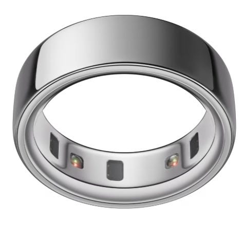 Oura-ring Gen3 Heritage smartring sporer aktivitetene dine, gir innsikt i helse- og aktivitetsdataene dine, samtidig som den er et elegant tilbehør. Den måler puls, oksygen i blodet, søvn og stress og har opptil 7 dagers batteritid. Lader følger med i original forpakning. Ta kontakt hvis du har flere spørsmål!