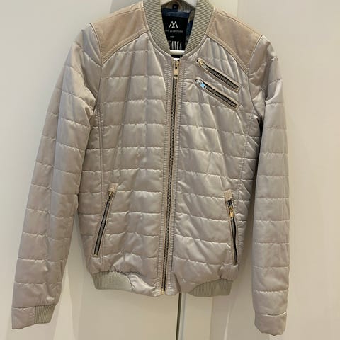 Stilig jakke fra Jofama med skinndetaljer. ( se bilder) Jakken er i fargen creme beige og har ett elegant snitt. Tidløs kvalitets jakke som er fin til vår/ sommer.