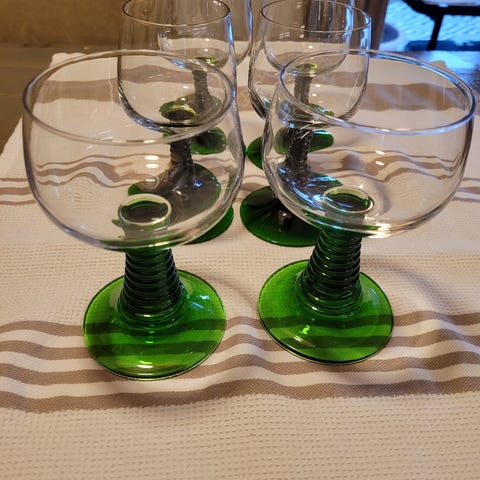 6 like glass, grønn stedt, klar klokke, 1 høyt