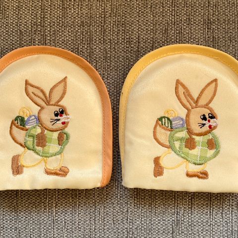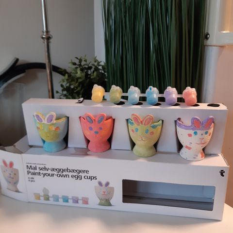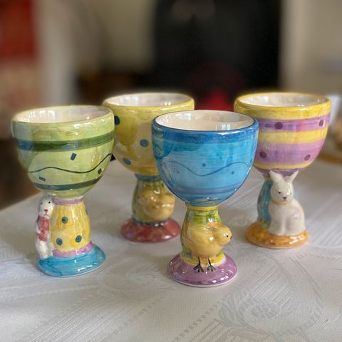4 eggeglass kylling kanin hare Påske Vår gul grønn blå rosa