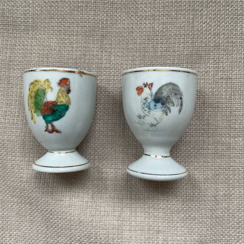 4 eggeglass som er ca 8 cm høye. Blank fin glasur uten bruksmerker.