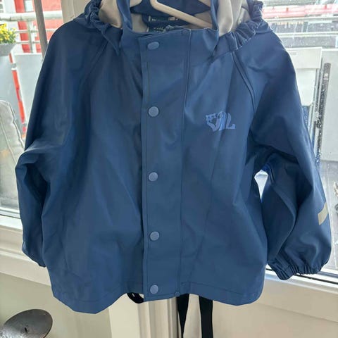 Rosa regnsett med bukse og jakke fra «Vill» str. 3-4 år. Lite og pent brukt. Buksen har et par små merker nede ved beinet og jakken har en liten flekk innvendig som ikke har gått av i vask. Ellers helt og pent. Satt på nye fotstrikker.