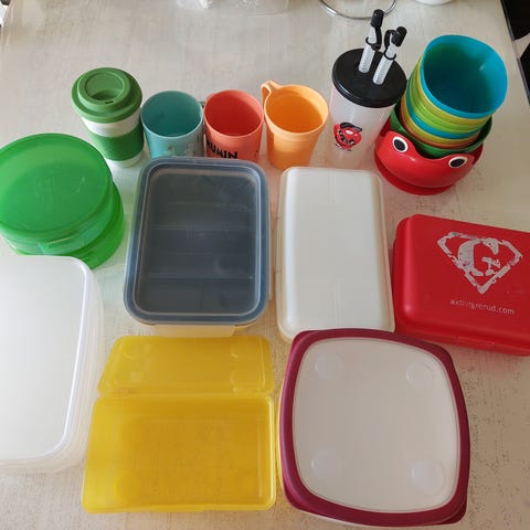 Settled med tre mindre oppbevaringsskåler med lokk. Passer inn i hverandre til praktisk oppbevaring. Kan brukes i oppvaskmaskin. Ikke egnet til bruk i mikrobølovn.
