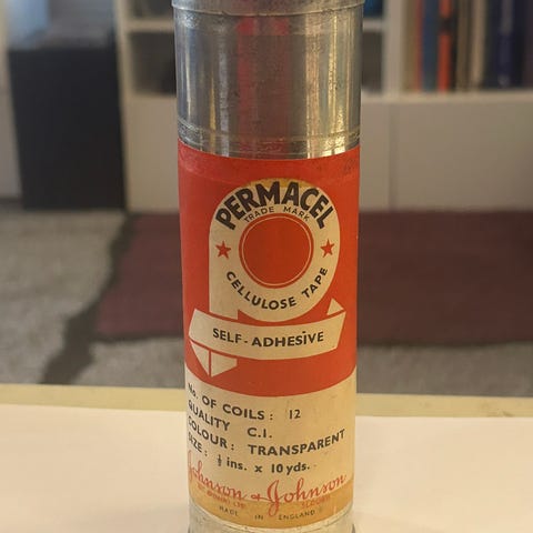 Gammel liten boks Cure-C-Cure Repair Pack. 8,5 x 8,5 x 2,5 cm.